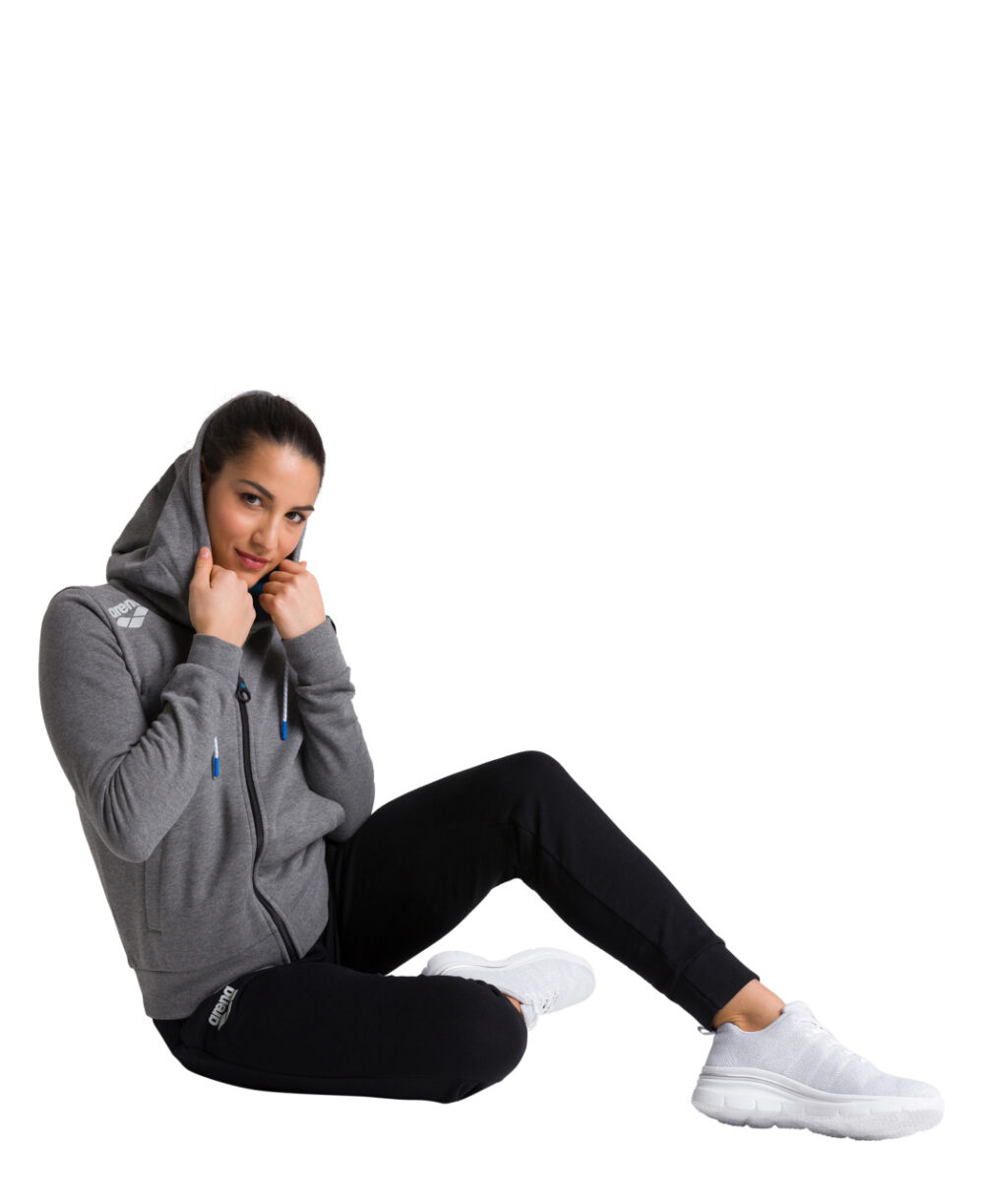 ג'קט נוח במיוחד של ארנה לנשים מושלם עבור פעילויות פנאי וספורט. בד פליז כותנה רך במיודח שמספק נוחות. מצויד בכיסים קדמיים, רוכסן קדמי וכובע. הג'קט מתאים עם המכנסיים והחולצות הספורטיביות של ארנה.