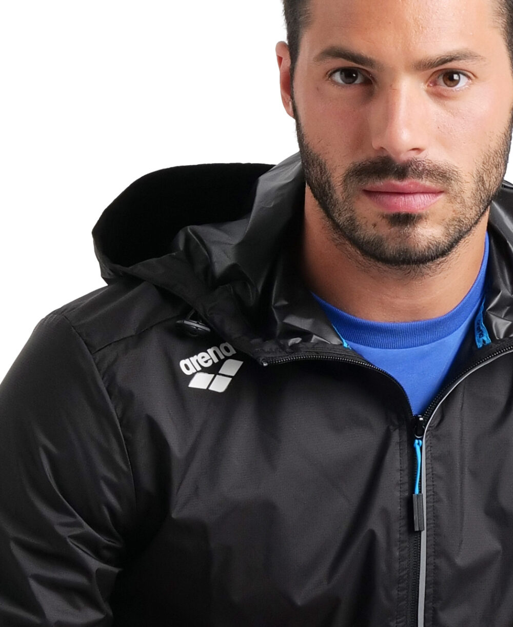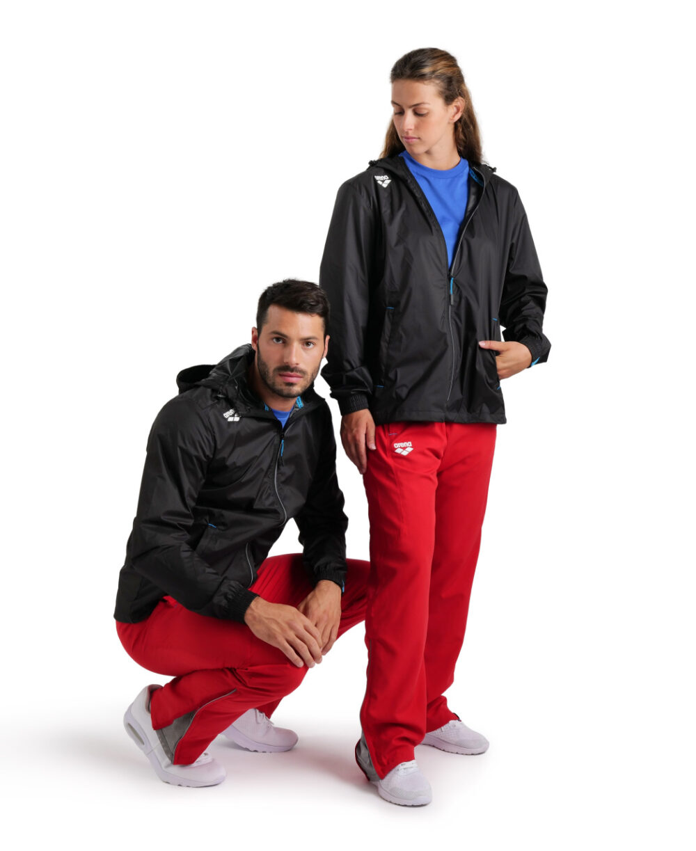 מעיל רוח עמיד וקל משקל לגברים ולנשים מקולקציית בגדי הספורט של ארנה טים ליין בהשראת אלופי השחייה שלנו ומעוצב עבור איגודי השחייה הגדולים