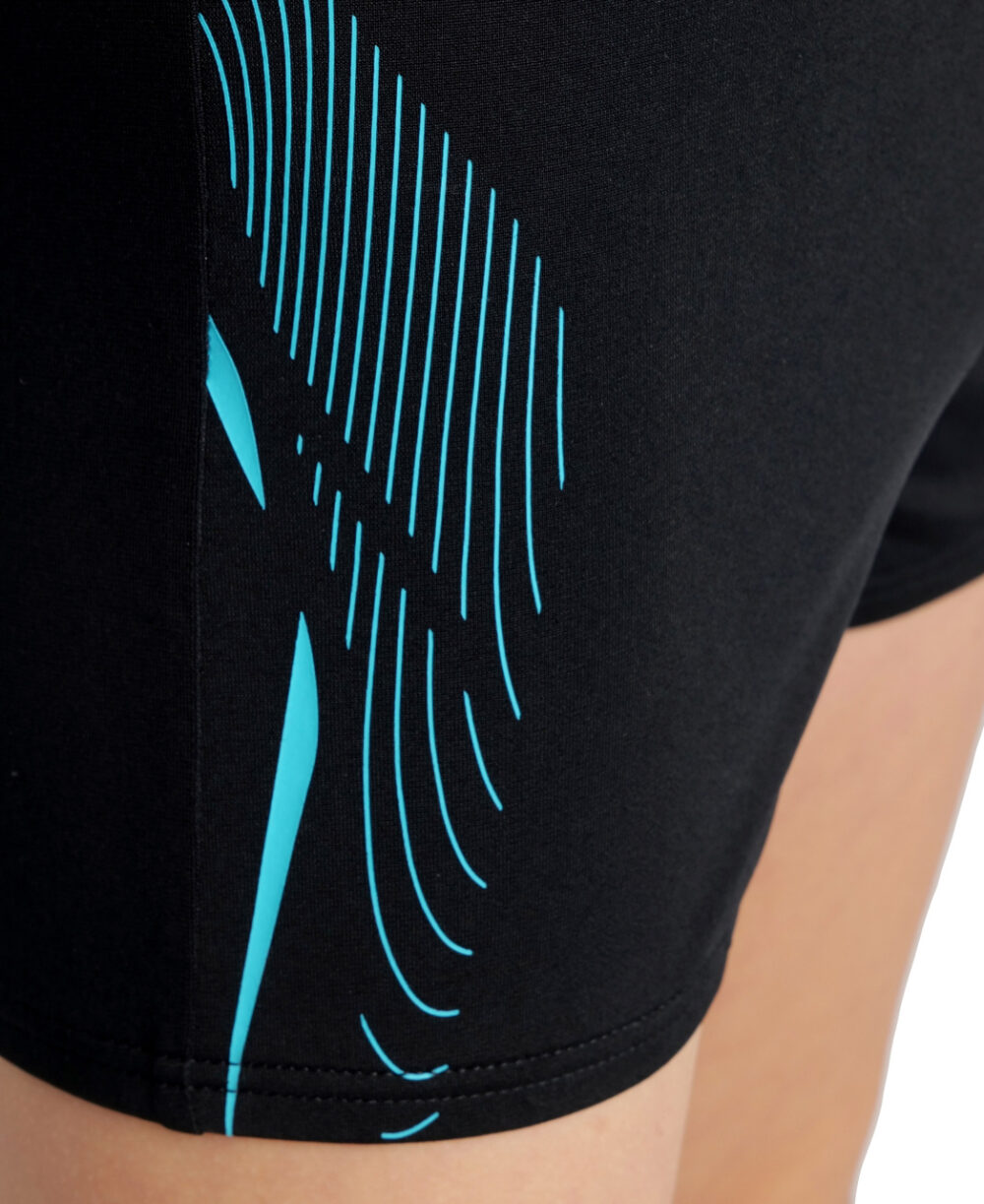 A classic athletic style is a fail-safe choice for a training swimsuit. Our Graphic Shorts for boys come in a range of dark colours and are embellished with a dynamic motif on the sides. The square shape is longer than a brief but offers the same flexibility for unobstructed swimming. Made with our durable MaxLife Eco fabric and finished with an inner drawstring for a no-budge fit.