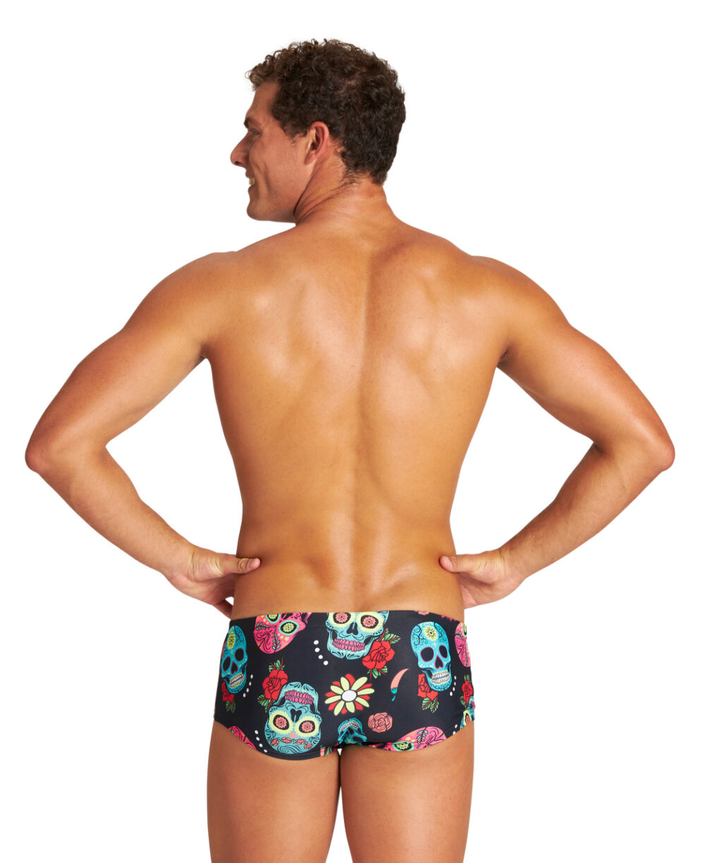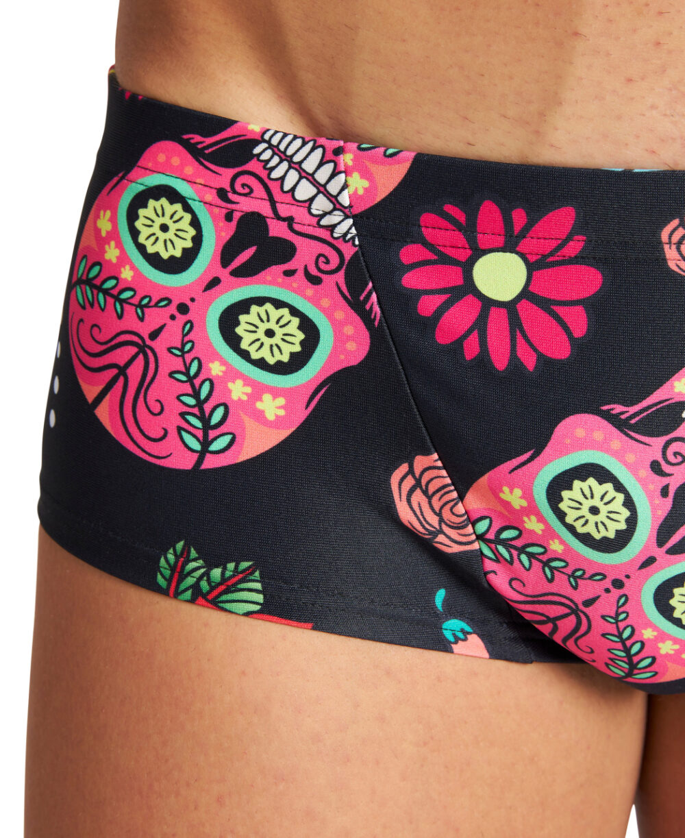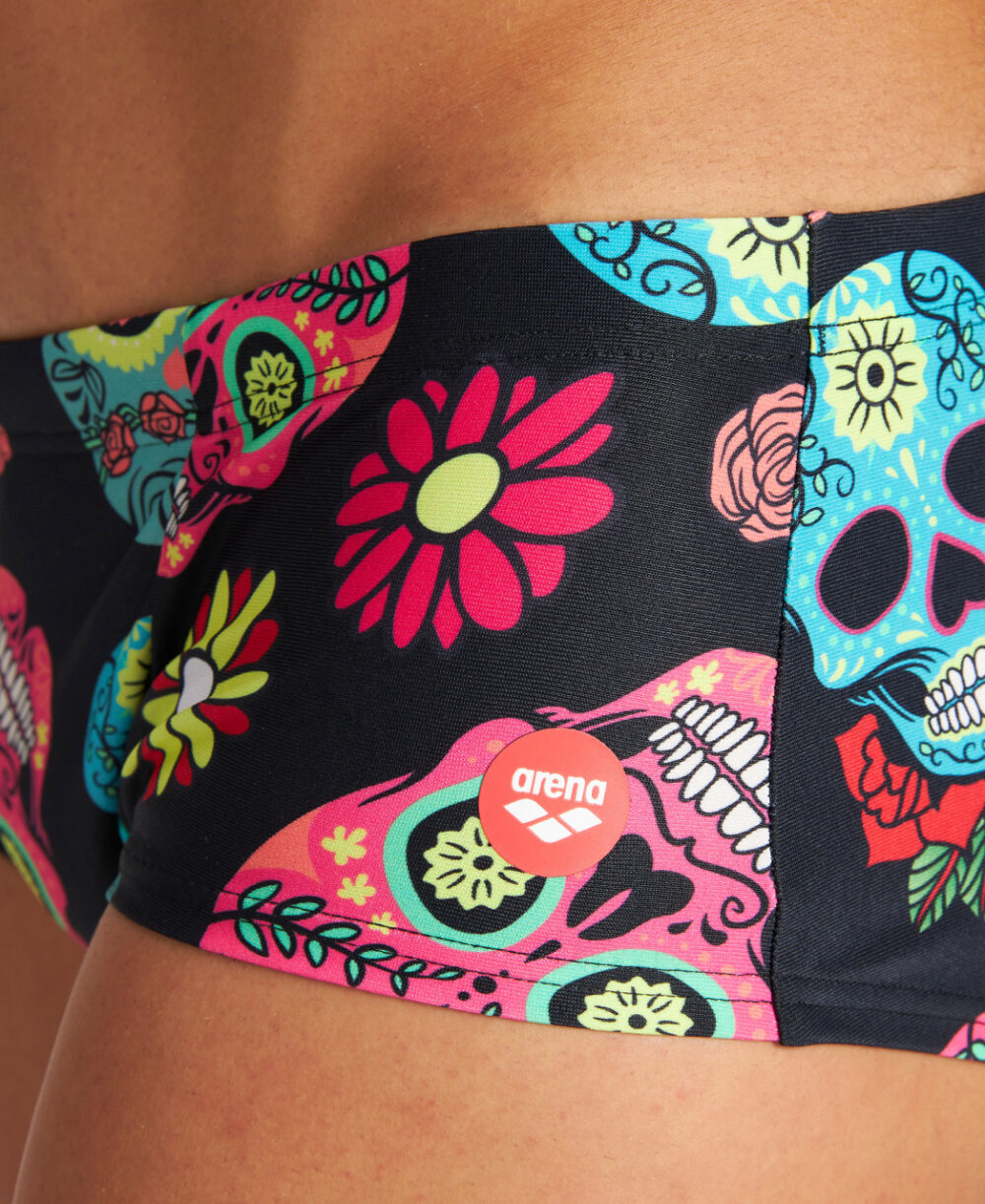 מכנסי השחייה המושכים את העין ועמידים במיוחד בגזרה נמוכה במותניים מכנסיים Crazy Skulls Carnival מיועדים לשחיינים רגילים. בד MaxLife עמיד לכלור עם הגנה משולבת UPF50+ UV מתייבש מהיר במיוחד ועמיד לאורך זמן. מצויד בבטנה קדמית. השרוך הפנימי המתכוונן מבטיח התאמה מעולה. אורך צד: 14 ס"מ