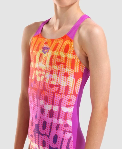 בגד ים שלם לבנות בעיצוב צבעוני דינמי עם לוגו arena.