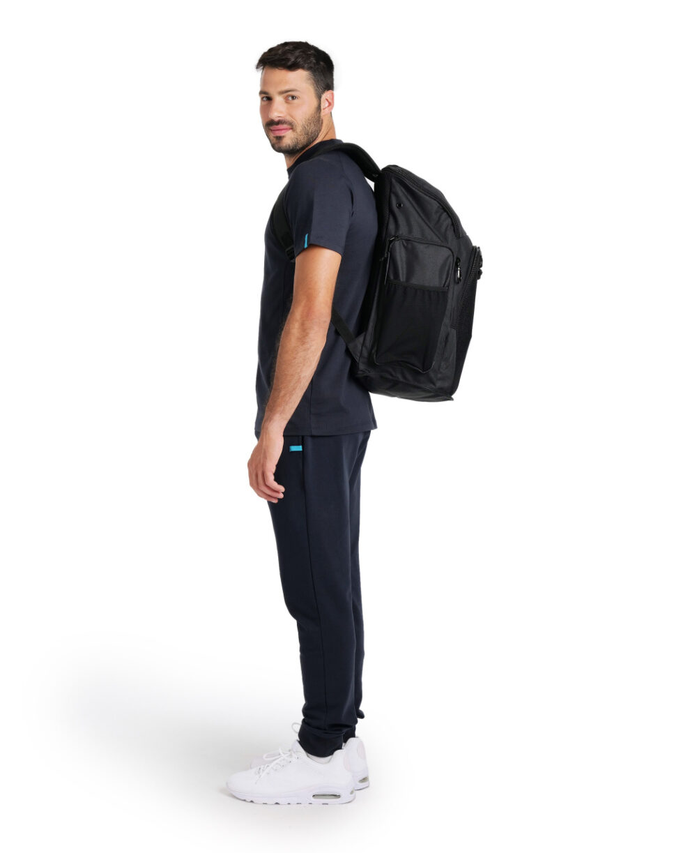 חלק מקולקציית ארנה "טיים ליין" בהשראת אלופי השחייה שלנו ומעוצב עבור איגודי השחייה הגדולים, תיק הגב פרקטי במיוחד עבור שחיינים עם העיצוב המיוחד שלו. יש לו מספר כיסים ותיק שחייה נפרד עבור ציוד רטוב כדי להבטיח אחסון ראוי. כיסי הצדד המרווחים יכולים להחזיק בקבוקי מים גדולים וציוד נוסף. החלק האחורי המרופד ורצועות הכתפיים מבטיחים נוחות מוחלטת, והתחית המחוזקת מגינה על תכולה מאוחסנת מפני רצפה רטובה. הממדים שלו הם 52 על 35 על 27 ס"מ עם קיבולת של 45 ליטרים.